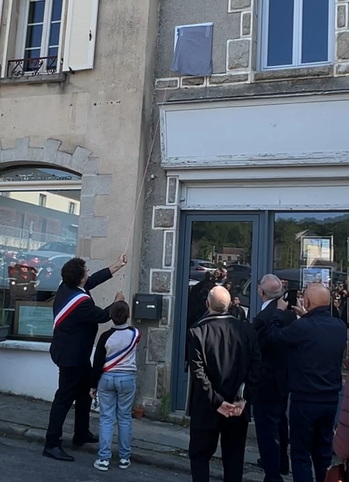Le cortège s’étant déplacé de l’ancienne mairie à la rue Pasteur le Maire, Fabrice Gerville Reache, a lu un beau discours et dévoila la plaque avec un jeune du conseil municipal.