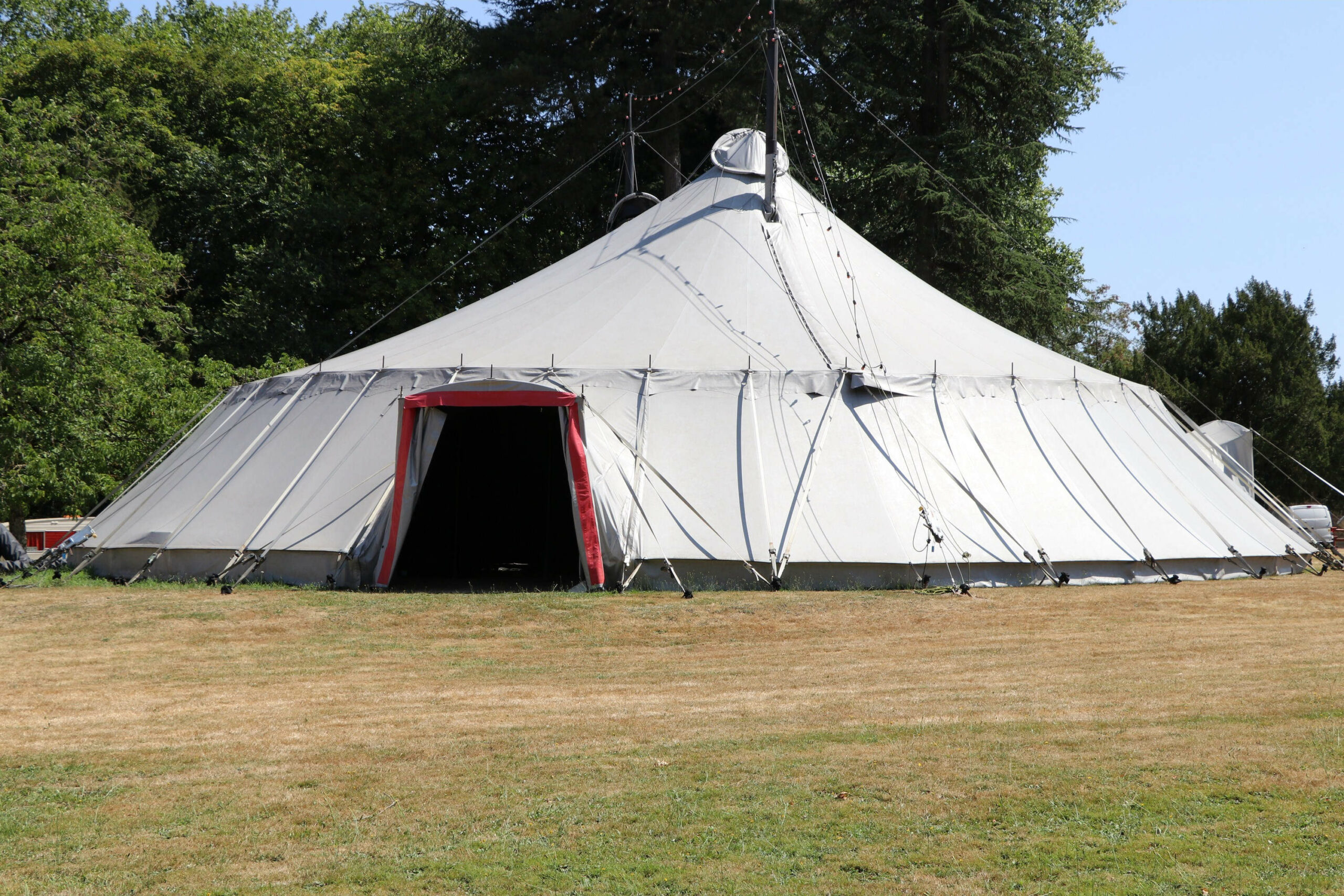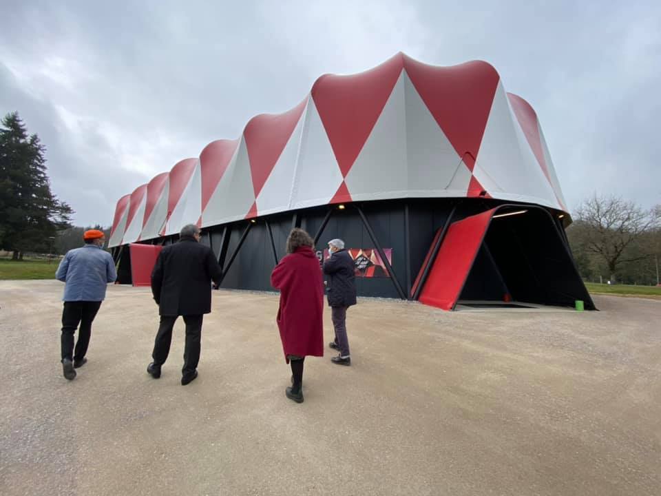 Le premier chapiteau a été changé plusieurs fois avant de devenir en 2021 un vaisseau rouge et blanc posé sur la pelouse du parc.