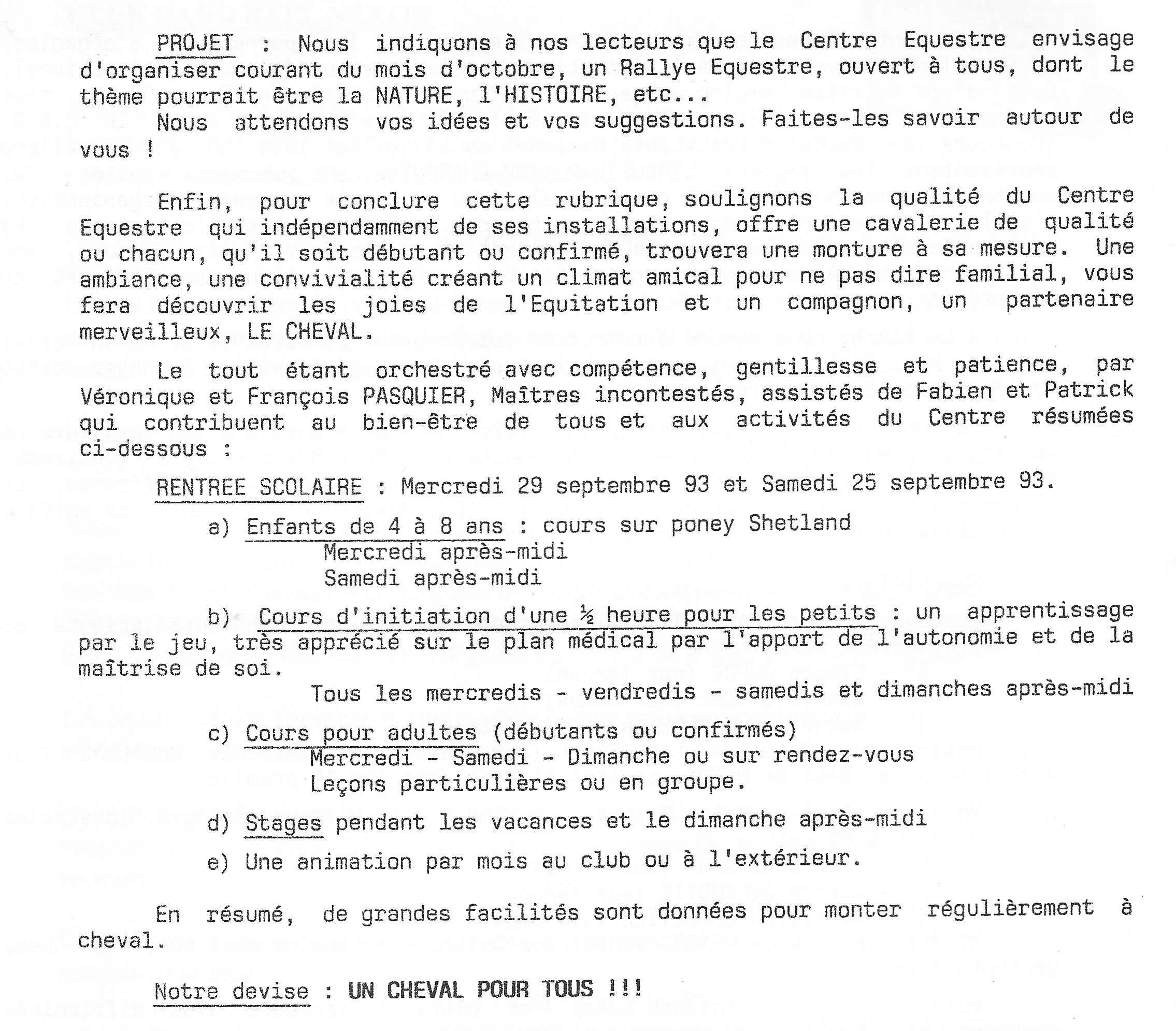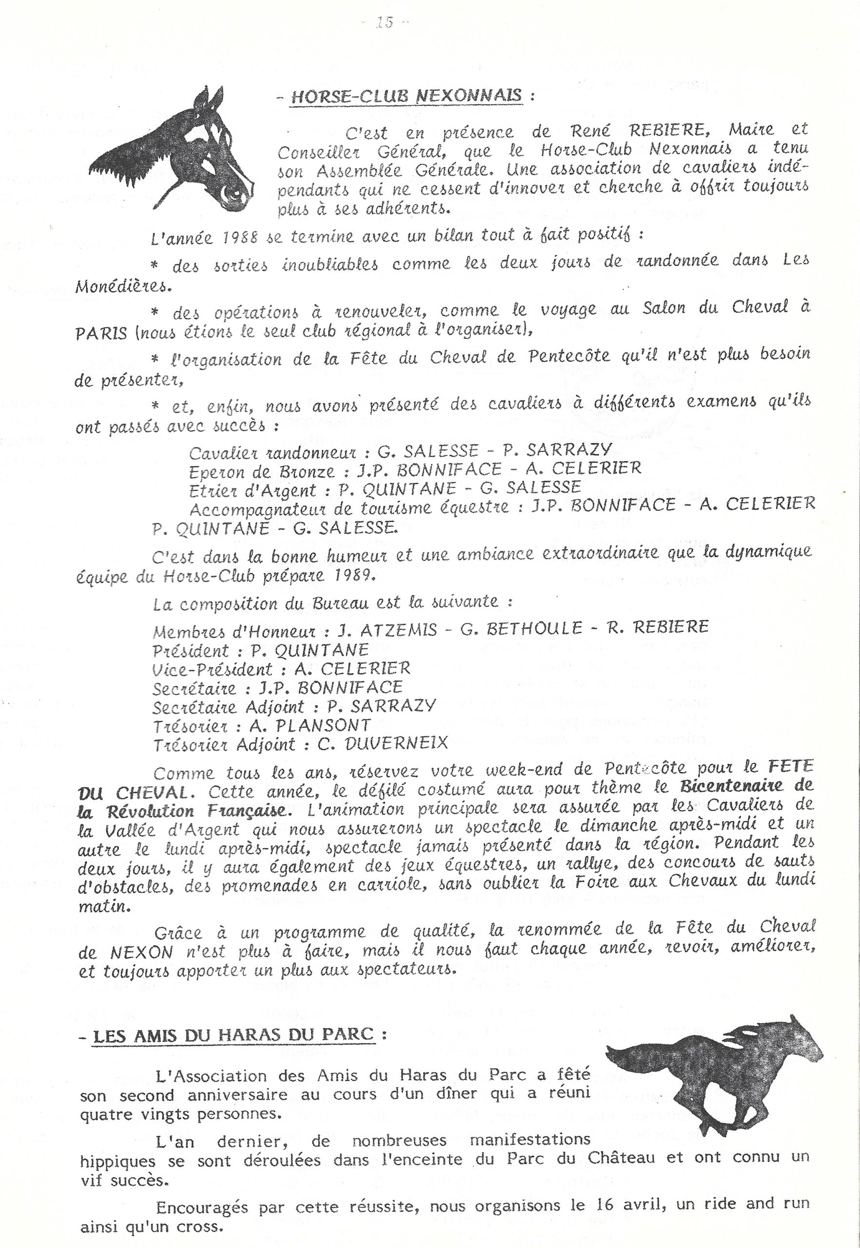L’attrait pour le cheval et l’équitation ne diminue pas et la fête du Cheval attire toujours beaucoup de monde. Mais il ne faut pas faiblir aussi le bureau appelle à la mobilisation de tous pour la future Fête du Cheval de l’année 1990.